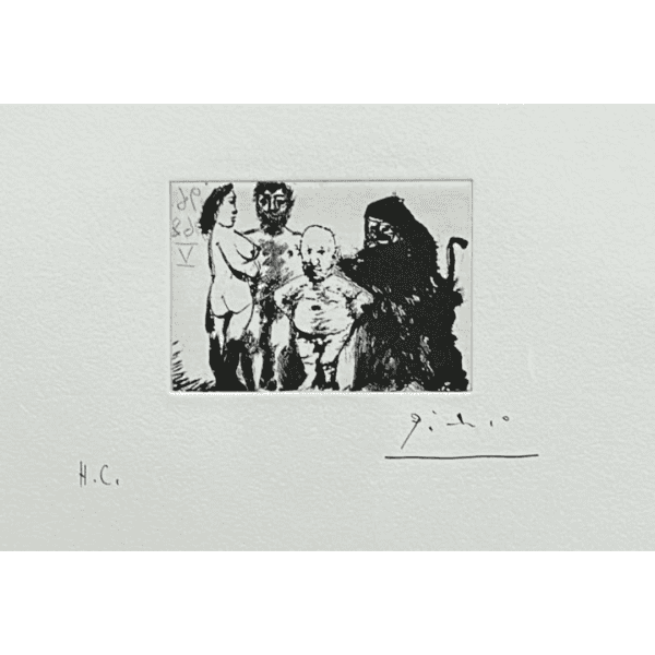 Scène biblique (David et Bethsabée?), avec bouffon au chapeau à deux cornes