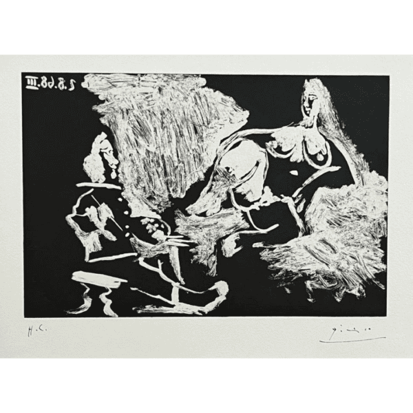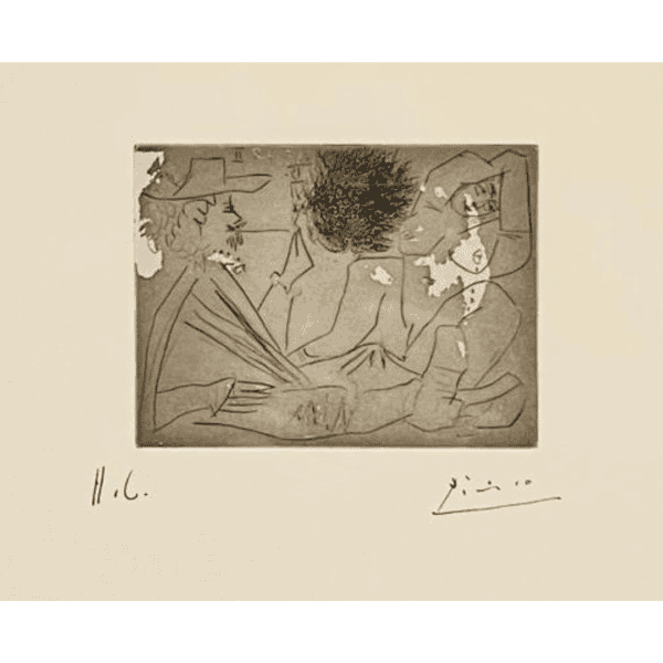 „Mousquetaire” envoyant une bouffée de fumée de pipe au visage d’une jeune femme