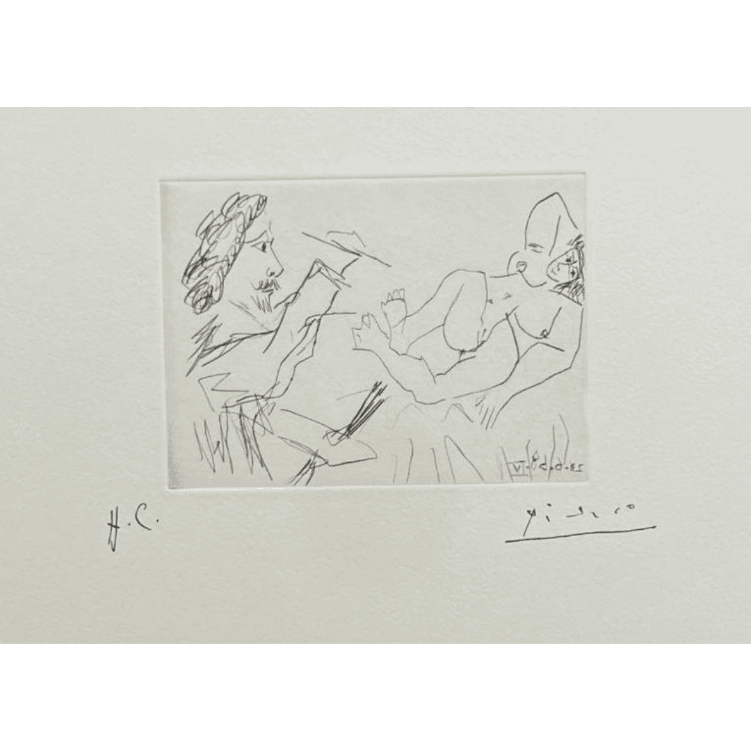 Peintre, et modèle sur un lit